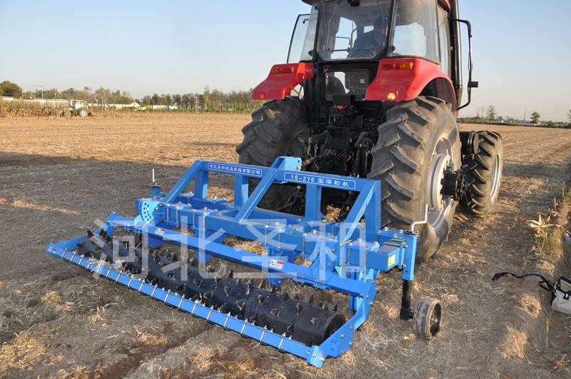該機是一種新型土壤深松機具,深松鏟采用特種弧面倒梯型設(shè)計,作業(yè)時不打亂土層,不翻土,實現(xiàn)全方位深松,形成貫通作業(yè)行的“鼠道”,松土后地表平整,經(jīng)過重型鎮(zhèn)壓輪鎮(zhèn)壓,具有保墑效果并起到限位作用,可最大程度的減少土壤失墑,更利于免耕播種作業(yè);該機適用于不同土質(zhì)及秸稈覆蓋量的土壤進行作業(yè),整機采用高強度框架結(jié)構(gòu),主梁離地、梁與梁之間距離均超過60厘米,避免堵塞,特別是在秸稈覆蓋量大的地塊作業(yè)不會產(chǎn)生壅堵,深松鏟具有高強度和高耐磨性,使整機強度全面提高。