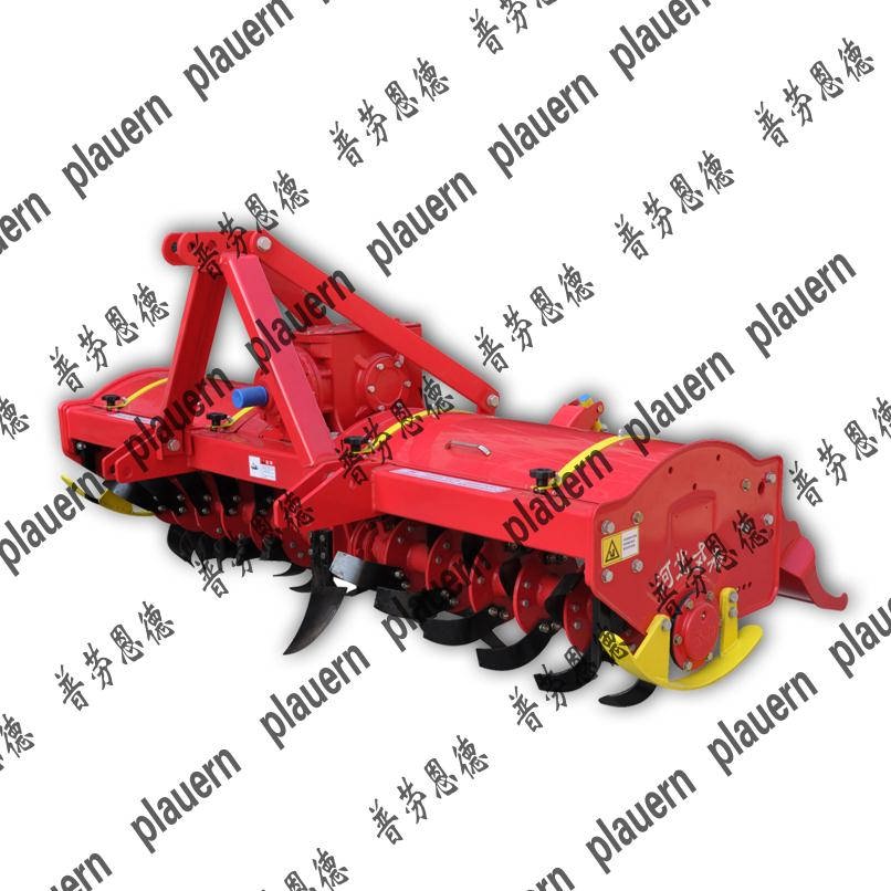 該機(jī)采用框架式結(jié)構(gòu),三點懸掛鏈接方式,與拖拉機(jī)配套作業(yè)使用,傳動方式為中間齒輪傳動,該機(jī)變速箱為鑄鋼材質(zhì),刀軸與變速箱聯(lián)接采用花鍵盤方式,易拆裝,刀軸管采用國標(biāo)無縫鋼管,花鍵軸為20CrMnTi調(diào)質(zhì)滲碳處理,整機(jī)采用散件靜電等離子噴涂、流水線組裝的安裝工藝,依靠工裝、模具保證零部件的加工精度,提高了生產(chǎn)效率,同時提高了外觀質(zhì)量;旋耕機(jī)上蓋板為圓弧活蓋式,使刀軸回轉(zhuǎn)上腔體空間加大,作業(yè)中甩起的泥土不易粘結(jié),同時有利于維修保養(yǎng);采用加重型刀庫,精密鑄造成型;刀軸采用機(jī)器人焊接,焊合加工防塵罩的雙層迷宮槽,有效保護(hù)軸承不受惡劣作業(yè)環(huán)境的影響,延長了使用壽命。該機(jī)刀片采用弧線型設(shè)計,入性能好,在加大耕深的同時保持了整機(jī)作業(yè)的平穩(wěn)性。加寬后托板,確保達(dá)到最佳平地效果。防磨板采用加寬、加大結(jié)構(gòu),可根據(jù)地域要求安裝在不同的位置。