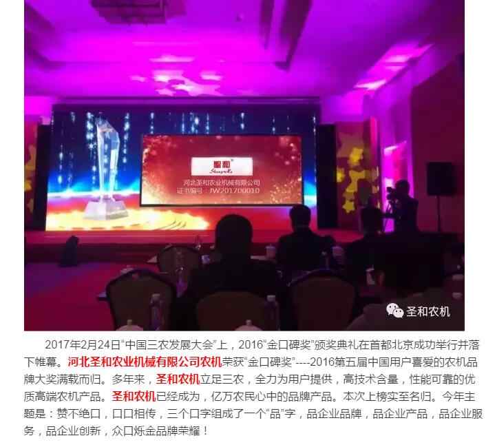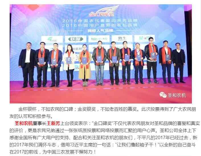 圣和農(nóng)機(jī)--“金口碑獎(jiǎng)”中國(guó)用戶喜愛的農(nóng)機(jī)品牌