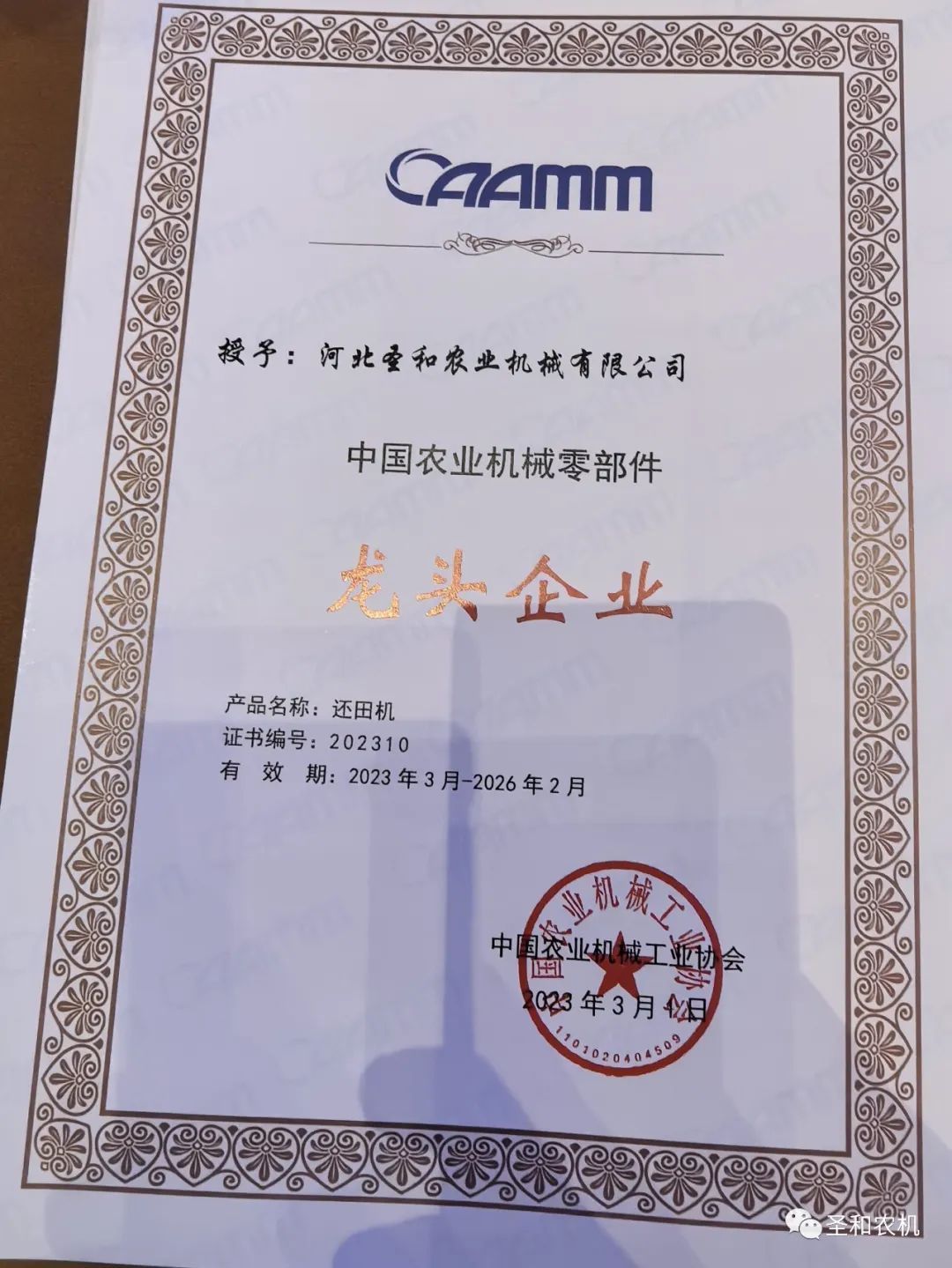 在會(huì)議證書(shū)頒發(fā)及表彰活動(dòng)環(huán)節(jié),河北圣和農(nóng)業(yè)機(jī)械有限公司再次榮獲“中國(guó)農(nóng)業(yè)機(jī)械零部件龍頭企業(yè)”榮譽(yù)稱號(hào),圣和公司董事長(zhǎng)王新芳先生出席了頒獎(jiǎng)儀式。