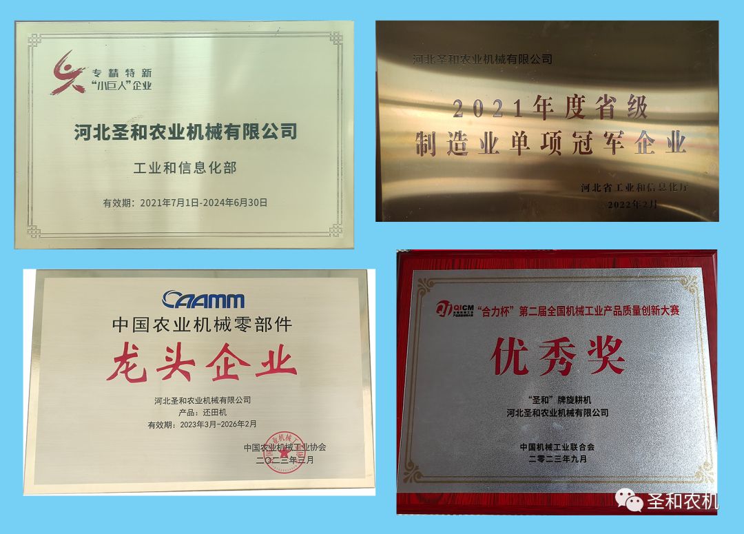 公司現(xiàn)為國家級專精特新“小巨人”企業(yè)、河北省“專精特新”示范企業(yè),省級制造業(yè)單項冠軍企業(yè),河北省首批縣域特色產(chǎn)業(yè)集群“領(lǐng)跑者”企業(yè)。公司擁有25項國家專利,參與制定多項國家標準。旗下?lián)碛?ldquo;圣和”、“普勞恩德”兩大品牌,產(chǎn)品遍布大江南北,行銷20多個國家和地區(qū)。其中旋耕機、還田機雙雙榮獲2022年度銷售冠軍,為中國耕整地機械行業(yè)的龍頭企業(yè)。