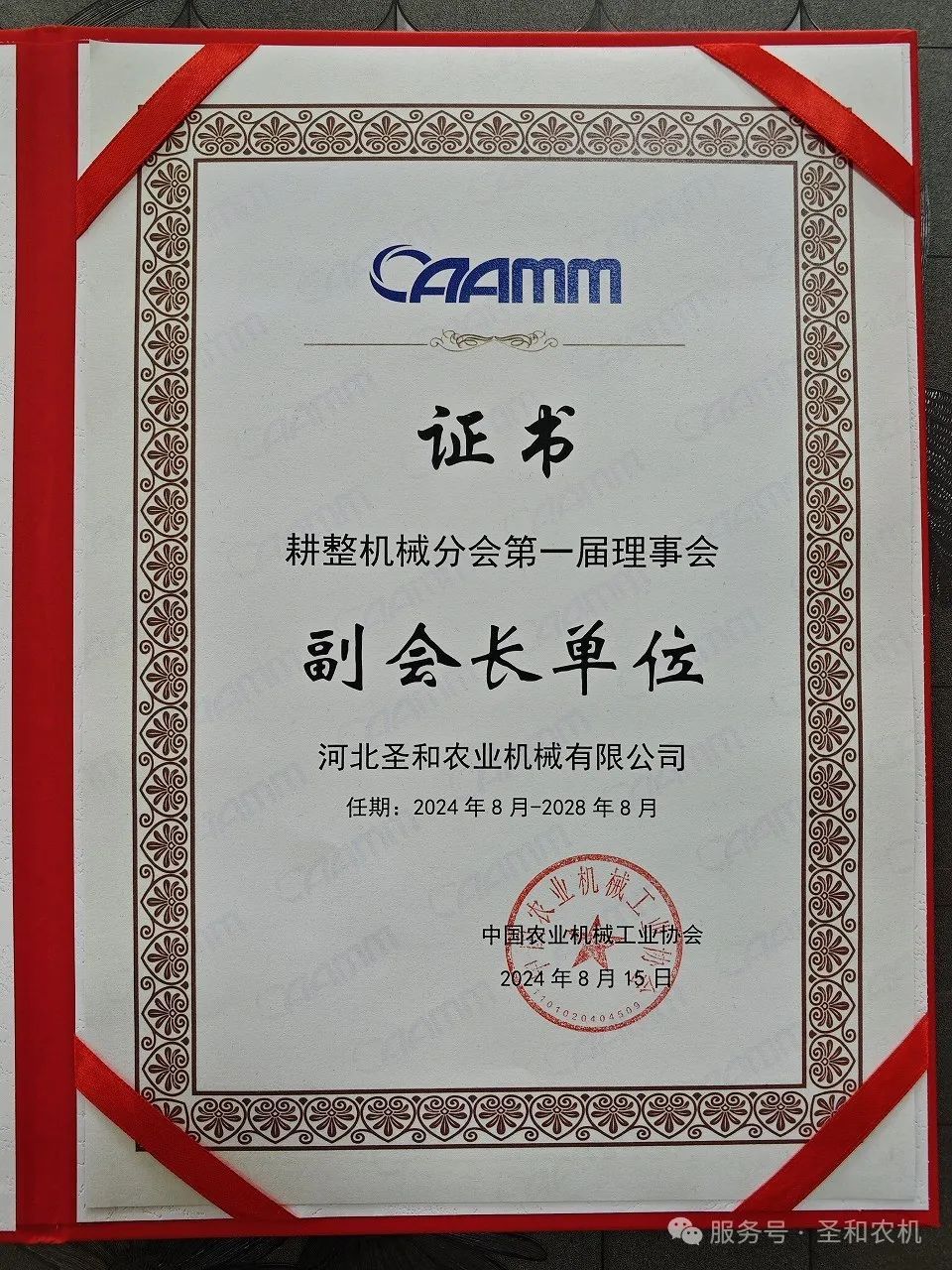 圣和公司此次被推選為耕整機(jī)械分會(huì)第一屆理事會(huì)副會(huì)長單位,是中國農(nóng)業(yè)機(jī)械工業(yè)協(xié)會(huì)及行業(yè)同仁對(duì)圣和公司耕整機(jī)械技術(shù)和公司實(shí)力的認(rèn)可與肯定。圣和公司定將不忘初心、不負(fù)眾望、砥礪前行,繼續(xù)聚焦耕整機(jī)械技術(shù)與產(chǎn)品創(chuàng)新,持續(xù)探索耕整機(jī)械生態(tài),加快形成新質(zhì)生產(chǎn)力,與中國農(nóng)業(yè)機(jī)械工業(yè)協(xié)會(huì)及耕整機(jī)械分會(huì)的行業(yè)同仁攜手推動(dòng)高端耕整農(nóng)業(yè)裝備產(chǎn)業(yè)的高質(zhì)量發(fā)展,為我國實(shí)現(xiàn)全面鄉(xiāng)村振興作出貢獻(xiàn)。