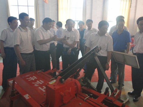 公司王董事長向馬廳長(中)介紹公司深松機具