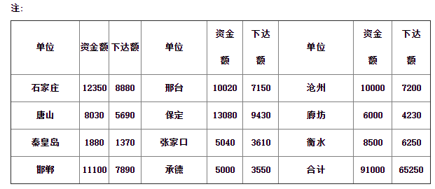 平泉縣 | 680 | 480 | 滄州運河區(qū) | 100 | 70 | 合計 | 91000 | 65250 |