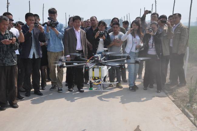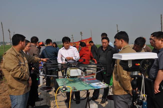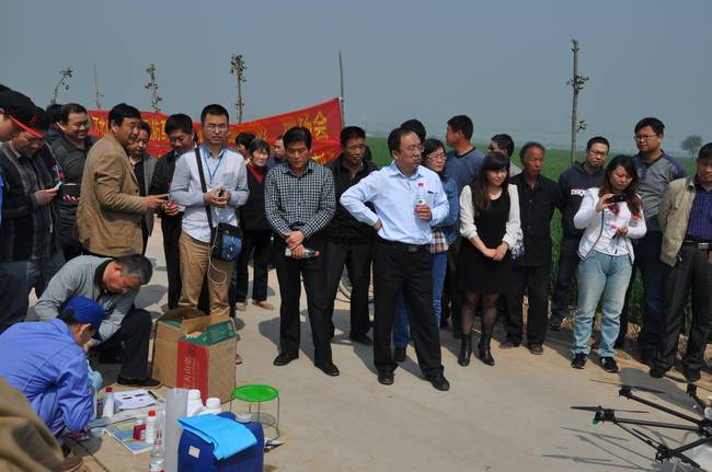 4月29日,我公司與西安鯤化航空科技有限公司聯(lián)合研制的“無人植保飛機”與河北威遠生化有限公司達成共識,在藁城展開了一次“無人植保飛機實地藥物防治試驗示范”現(xiàn)場會。到場參觀的有農(nóng)業(yè)局局長趙勝哲、省植保站楊炎杰、市植保站王維蓮、圣和董事長王新芳、威遠生化農(nóng)藥總經(jīng)理范朝輝,農(nóng)業(yè)局局長等領(lǐng)導(dǎo)在觀摩機具作業(yè)后,給予了高度評價。