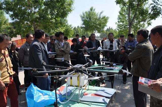 5月5日,我公司與西安鯤化聯(lián)合研制的無人植保飛機(jī)在晉州登場亮相,此次參觀試驗的有晉州市劉市長、石家莊市植保站王維蓮站長、我公司董事長王新芳、威遠(yuǎn)生化植保營銷中心總經(jīng)理應(yīng)曉東等公司領(lǐng)導(dǎo)及當(dāng)?shù)卮迕窈秃献魃?0多人觀摩;在本次試驗會上,展示的無人飛機(jī)一個用于小麥藥效防治工作、一個用于全程跟蹤航拍工作。