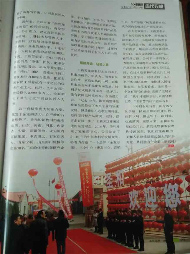 2016 年 3 月 6 日 是 河 北 圣 和 農(nóng) 業(yè) 機(jī) 械 有 限 公 司 ( 以 下 簡(jiǎn) 稱圣 和 ) 值 得 紀(jì) 念 的 日子。