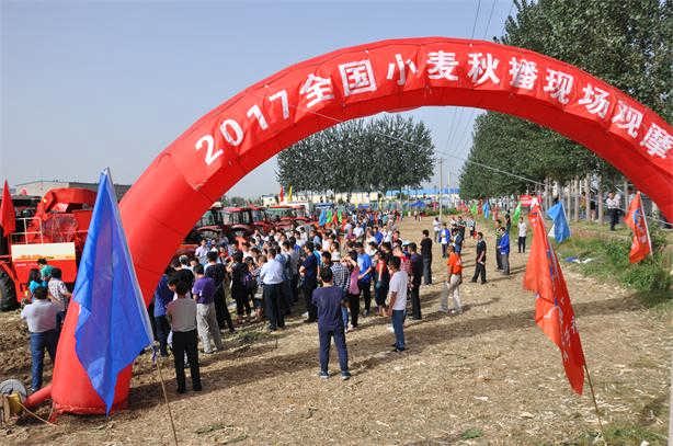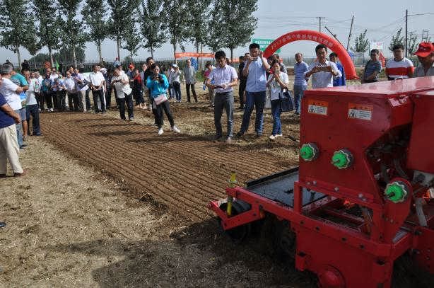 2017年9月22日,全國小麥秋播現(xiàn)場觀摩暨技術(shù)培訓(xùn)班在石家莊市辛集市隆重舉行。此次觀摩會由農(nóng)業(yè)部全國農(nóng)技中心主辦,河北省農(nóng)業(yè)技術(shù)推廣總站牽頭,河北省農(nóng)機(jī)修造站承辦。來自天津、河北、山西、上海、江蘇、安徽、山東、河南、陜西、湖北、重慶、四川、甘肅、貴州等?。ㄗ灾螀^(qū)、直轄市)農(nóng)業(yè)技術(shù)推廣站(總站)代表、有關(guān)專家等200余人參加了此次觀摩會。圣和農(nóng)機(jī)攜旗下播種神器---2BFSG-12(12)(200)深松旋耕施肥撒播機(jī)亮相并且現(xiàn)場作業(yè)演示。