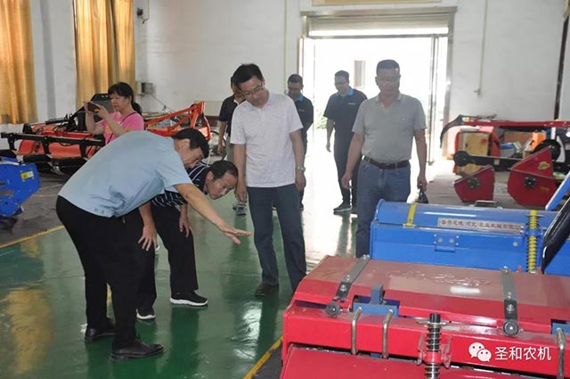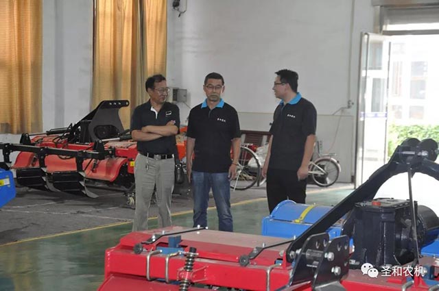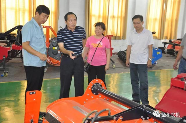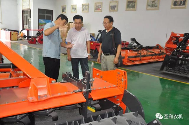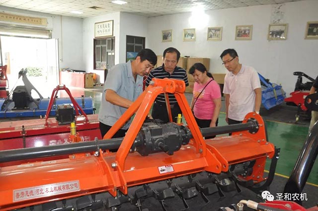 公司董事長王新芳先生及團隊熱情接待,介紹了公司概況,并陪同在公司展廳參觀了公司產(chǎn)品,孫站長一行對圣和與普勞恩德的系列產(chǎn)品:旋耕機、秸桿還田機、深松機、攪漿機、藥材收獲機等性能、參數(shù)進行了詢問,對引進國外技術(shù)工藝相結(jié)合給予了肯定,也討論了各品種農(nóng)機適應地域等不同特點。