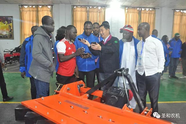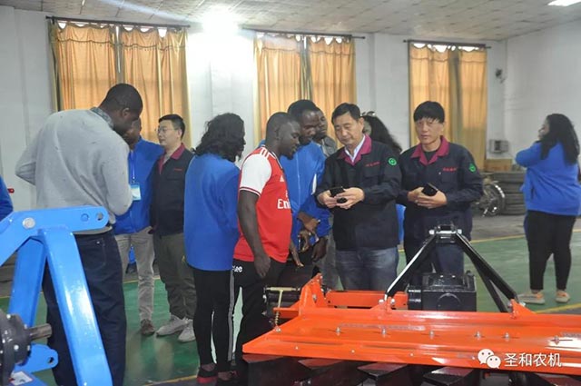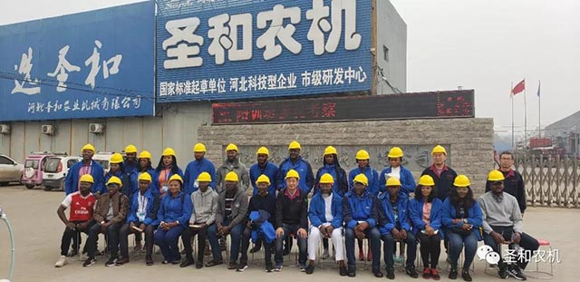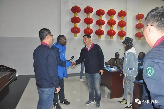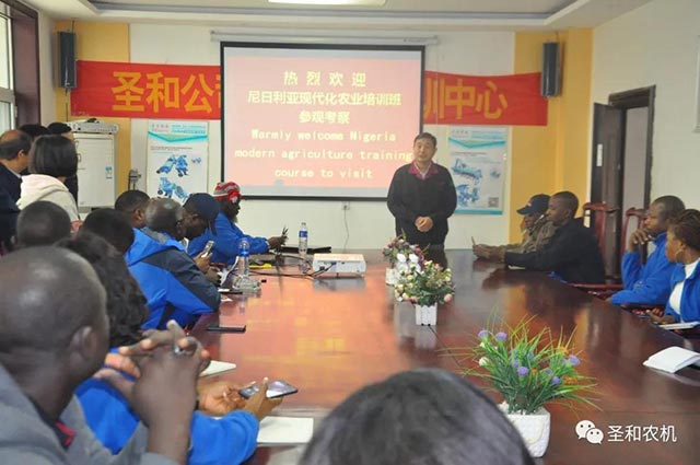 (10月24日)尼日利亞農(nóng)場(chǎng)院及部分政府人員組織現(xiàn)代化農(nóng)業(yè)培訓(xùn)班來(lái)河北圣和農(nóng)業(yè)機(jī)械有限公司參觀學(xué)習(xí),公司董事長(zhǎng)王新芳、總經(jīng)理師西峰及常務(wù)副總經(jīng)理蘇山嶺帶領(lǐng)團(tuán)隊(duì)熱情接待,并在公司會(huì)議室交流探討,公司董事長(zhǎng)王新芳致歡迎詞,介紹了企業(yè)概況、發(fā)展理念和發(fā)展目標(biāo),圣和公司正以優(yōu)異的產(chǎn)品邁向現(xiàn)代化、國(guó)際化。