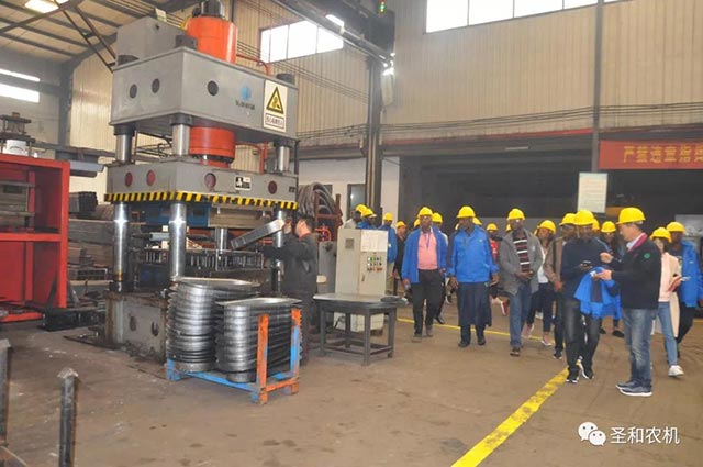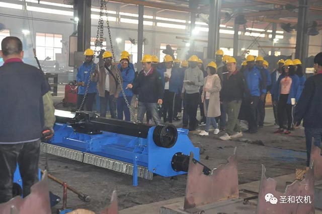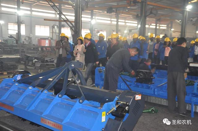 之后,參觀車間生產(chǎn)制造工藝,在過(guò)程中講解每一個(gè)生產(chǎn)制作環(huán)節(jié),對(duì)旋耕機(jī)、還田機(jī)等多種機(jī)具的工作原理、效果與土地適用性作出講解,參觀完畢后客人對(duì)圣和公司生產(chǎn)工藝與產(chǎn)品給予高度肯定。