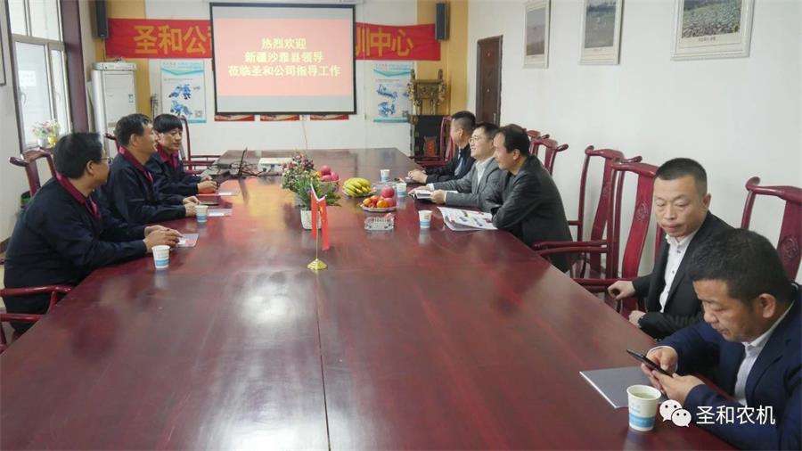 2021年4月1日,新疆沙雅縣常委副縣長胡亞東、商務(wù)和工業(yè)信息化局書記余旭、工商聯(lián)主席靳紹陶一行蒞臨圣和參觀考察!公司董事長王新芳熱情接待!