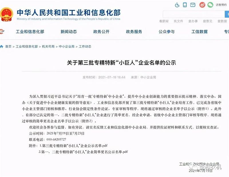 圣和榜上有名|國(guó)家工信部公布國(guó)家級(jí)第三批專精特新“小巨人”企業(yè)名單