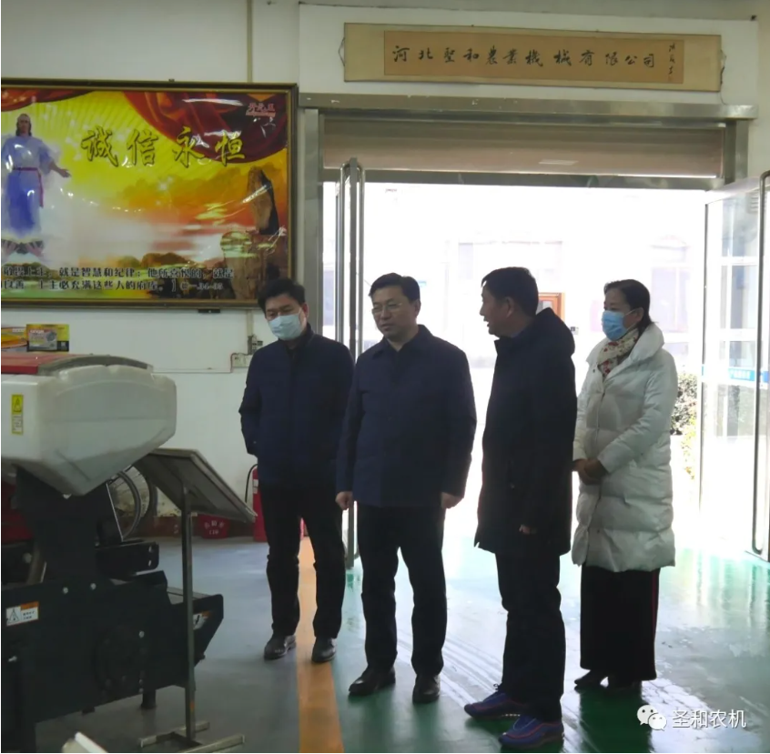 2022年2月16日,河北省農(nóng)機局戎局長,劉副局長,省推廣總站史站長,邢臺市趙局長蒞臨圣和公司調(diào)研!公司董事長王新芳熱情接待!