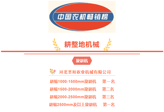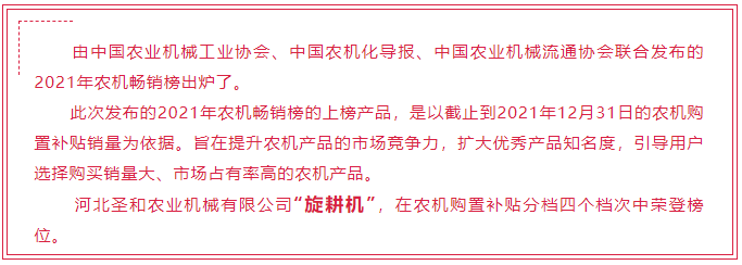 2021年中國農(nóng)機暢銷榜發(fā)布——圣和旋耕機榮登榜位