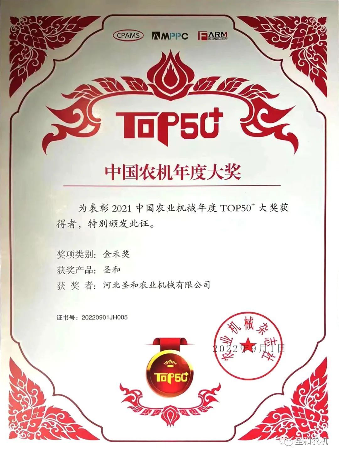 ●2022年,河北省工業(yè)和信息化廳,公布了河北省首批縣域特色產(chǎn)業(yè)集群“領(lǐng)跑者”企業(yè)名單,河北圣和農(nóng)業(yè)機(jī)械有限公司入選。