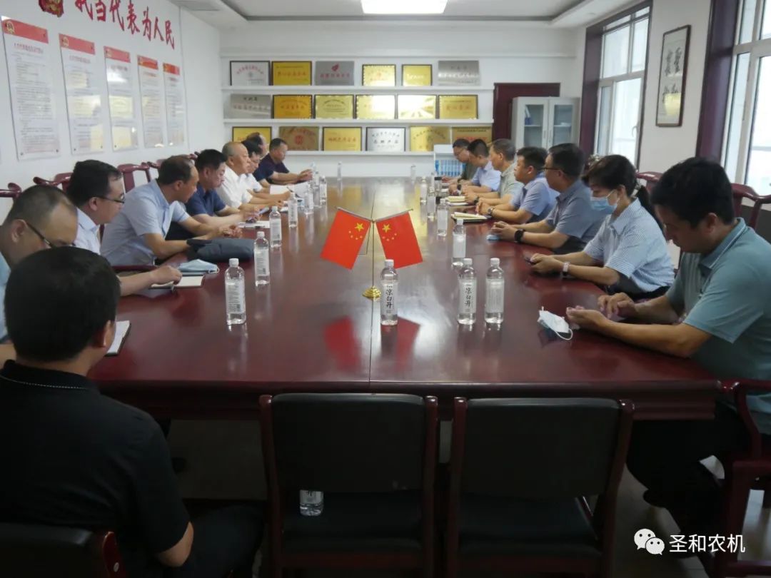2022年7月19日,河北省專精特新“小巨人”企業(yè)技術(shù)、人才需求調(diào)研組蒞臨河北圣和農(nóng)業(yè)機(jī)械有限公司進(jìn)行調(diào)研,調(diào)研組人員有省科技廳二級(jí)巡視員楊建鋒組長(zhǎng),省委組織部人才工作處三級(jí)調(diào)研員張志永副組長(zhǎng),省工信廳中小企業(yè)處處長(zhǎng)劉勝利等領(lǐng)導(dǎo),寧晉縣副縣長(zhǎng)李剛等領(lǐng)導(dǎo)陪同。