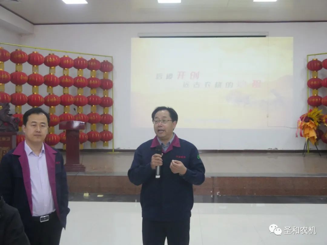 參觀結束后,營銷管理中心總經(jīng)理郭廣彥發(fā)表致詞,對大家的到來表示歡迎,圣和的發(fā)展離不開廣大客戶的支持,圣和將為大家生產(chǎn)優(yōu)質農(nóng)機,做好品牌,與大家合作共贏。