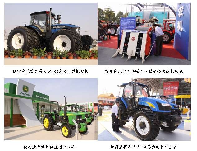 這次參展的企業(yè)在會上集中展示了品種最全、性能優(yōu)良、技術(shù)先進的各種農(nóng)業(yè)機械產(chǎn)品。在展臺特裝設計上,突出顯示了企業(yè)的發(fā)展成績與國際接軌的水平。福田雷沃重工、山東時風集團、中國一拖、山東五征、常州東風等國內(nèi)農(nóng)機龍頭企業(yè)均攜帶企業(yè)最為先進的產(chǎn)品參加了會議,參展面積也為歷年來最大,體現(xiàn)了企業(yè)的強大實力;約翰迪爾中國市場部、久保田(蘇州)、上海紐荷蘭等企業(yè)的展臺特裝創(chuàng)意獨具一格,成為展覽場館中亮麗的風景線。