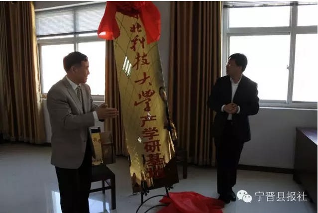 在熱烈的掌聲中,李小平、靳占忠分別代表寧晉縣政府與河北科技大學(xué)簽署產(chǎn)學(xué)研合作協(xié)議,并為河北科技大學(xué)產(chǎn)學(xué)研基地、河北科技大學(xué)技術(shù)轉(zhuǎn)移中心寧晉分中心揭牌。